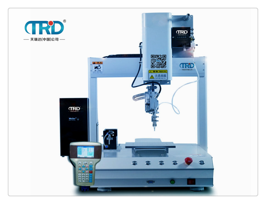 產品介紹TH-4410四軸自動焊錫機可對各種工件進行高速拖焊,點焊,斜線焊接等。解決了人工重復性焊接動作出現的焊點不均勻、虛焊等現象。我們的優勢是焊點一致性好,品質穩定。自動焊錫機操作簡單,生產效率高、焊接質量好、環保又節能、初學者也能達到熟練工人的焊接效果。本機采用簡易快速地輸入焊錫程序,其軟件并具有強大的編輯功能,可輕易、快速的完成程序教導。 產品用途 本機廣泛應用于汽車電子、數碼、電子、LCD、線路板、分支器、電子調節器、LED、電聲、FPC焊錫、馬達、通訊耦合器防盜器線材行業USB的焊接等生產行業中的焊錫設備。 產品特點 ◆ 節省錫線,無錫線浪費。焊點均勻一致性好 ◆ 快速回溫的TM烙鐵頭可安裝于全系列機種為將來“無鉛焊錫”的趨勢所設計 ◆ 高精度的熱電耦位于烙鐵最前端,所以能感測到烙鐵頭前端溫度的細微變化。 ◆ 大功率加熱控制器,保證連續焊錫的穩定性。 ◆ 焊錫方式多種多樣,全部工藝參數可由客戶自行設置,以適應各種高難度的焊錫作業和微焊錫工藝 ◆ 高度可靠的金屬防靜電模式設計,焊接敏感組件更安全 ◆ 有效地提高焊錫工藝品質,實現了焊錫過程的自動化與智能化 ◆ 錫絲送錫位置:可調式,有精密螺絲控制 技術參數