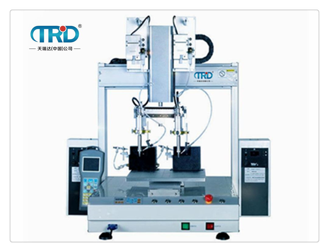 TH-4210雙頭自動焊錫機可對各種工件進行高速拖焊,點焊,斜線焊接等。解決了人工重復性焊接動作出現的焊點不均勻、虛焊等現象。我們的優勢是焊點一致性好,品質穩定。自動焊錫機操作簡單,生產效率高、焊接質量好、環保又節能、初學者也能達到熟練工人的焊接效果。本機采用簡易快速地輸入焊錫程序,其軟件并具有強大的編輯功能,可輕易、快速的完成程序教導。